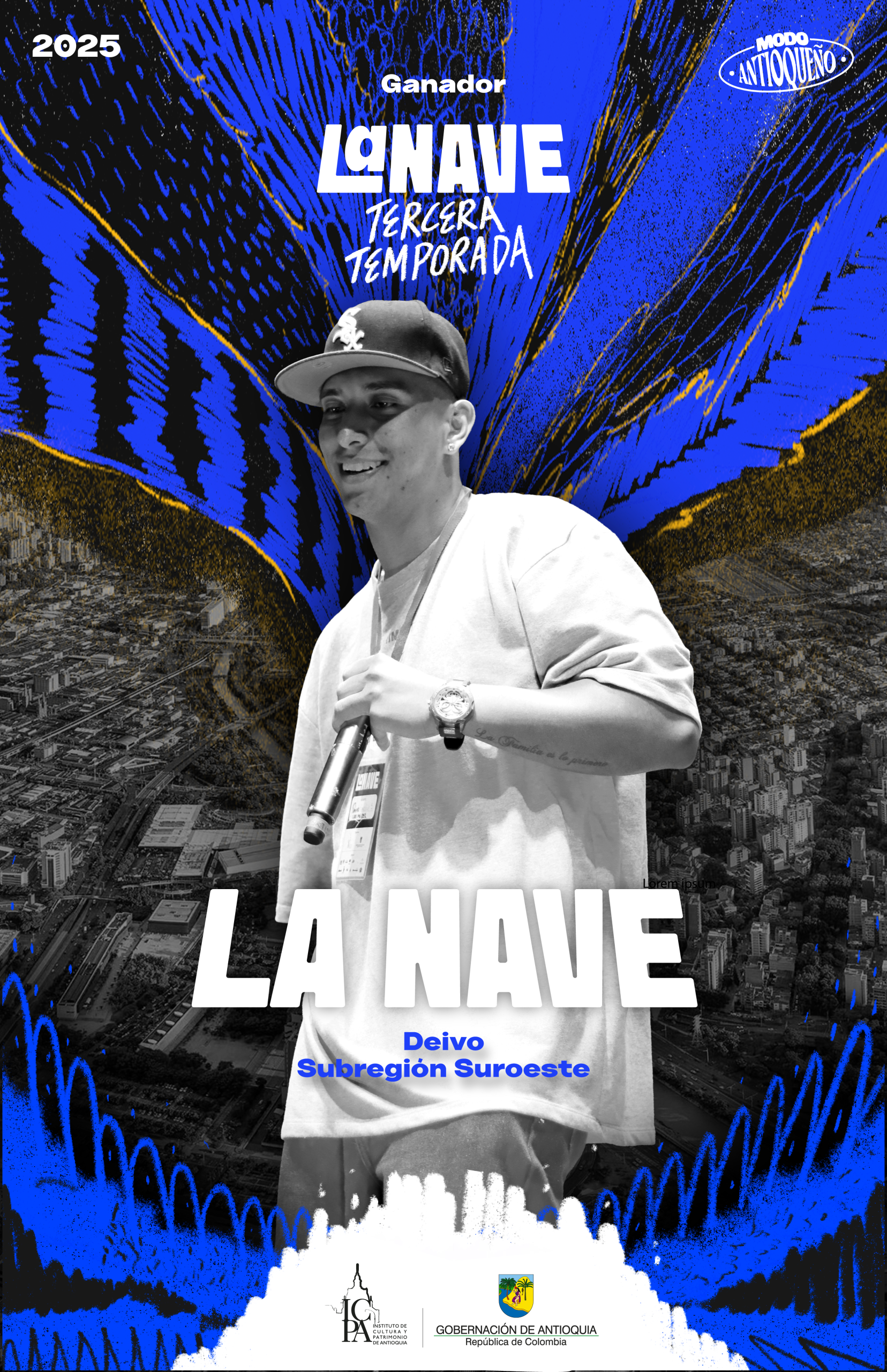 La Nave es un proyecto cultural y formativo promovido y liderado por la Gobernación de Antioquia y el Instituto de Cultura y Patrimonio de Antioquia, cuyo propósito es identificar, acompañar y potenciar el talento musical emergente en todas las subregiones del departamento. A través de procesos de formación, audiciones en vivo y estímulos profesionales, el programa se ha consolidado como una plataforma para el desarrollo artístico en el territorio.
